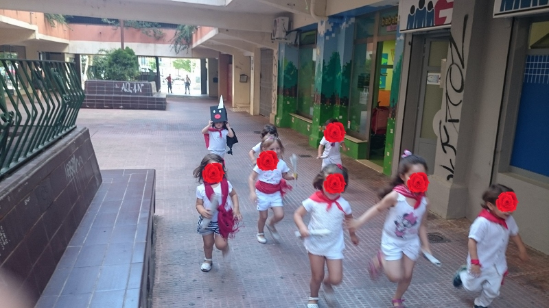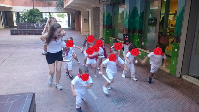 Muy buenos días a todas y a todos, ya hemos comenzado los talleres de verano en Bababá, el primer país que hemos visitado ha sido nuestra querida España. La primera semana la hemos dedicado a la música, y rendimos nuestro pequeño homenaje a Paco de Lucía y a la guitarra española, los peques hicieron unas guitarras pequeñas con cartulina y lana, y las «tocaban» al son de «Entre dos aguas». Otro día hicimos una guitarra gigante que los niños y niñas pintaron. La segunda semana la hemos dedicado a los San Fermines, hicimos unos toros de cartón, enrollamos los periódicos, les enseñamos la canción de San Fermín y hoy viernes hemos salido al pasaje a correr los encierros,, se lo han pasado de fábula.También recordamos los números , las letras, contamos cuentos motores en inglés y por supuesto jugamos y fuimos al parque Esta siendo un verano estupendo en la guarde, aquí os dejamos unas fotos para que veáis todo lo que hemos hecho. La semana que viene nos iremos a Italia Emoticón grin ¡Un abbraccio a tutti!